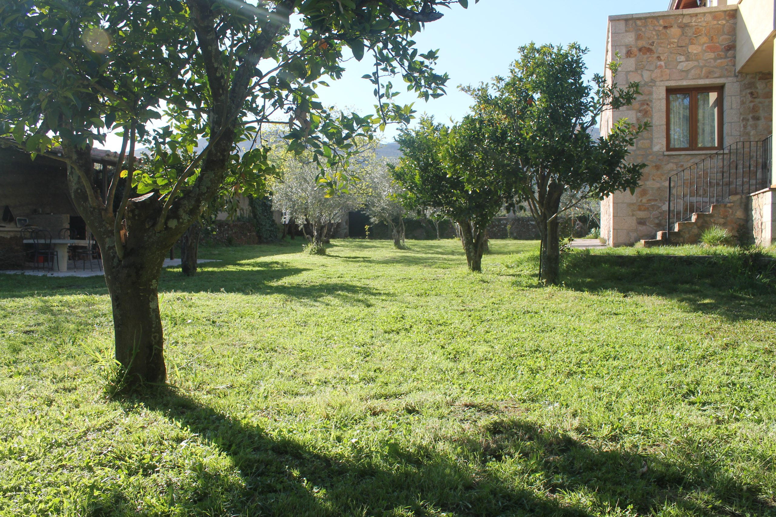 Esta casa rural en Sierra de Gata es ideal para grupos grandes o parejas, porque las extensiones y la belleza del terreno engancha y hace que no apetezca salir de aquí. Un césped verde rodea la casa y forma parte del jardín; además de sus rosales, enredaderas, flores aromáticas, parras, árboles frutales como: el naranjo, peral, caqui, higueras, además de otros árboles como olivos, palmeras, abetos, etc.